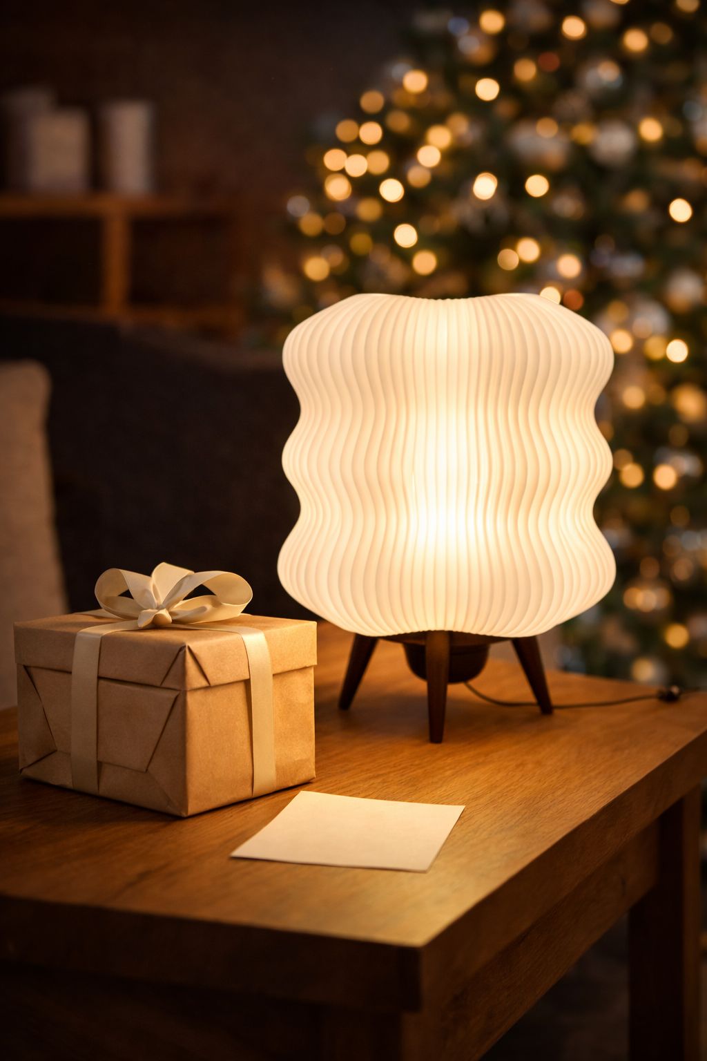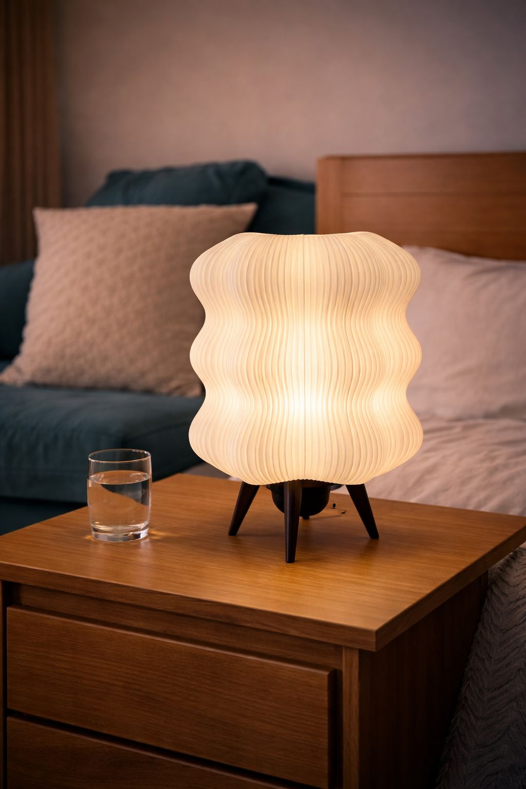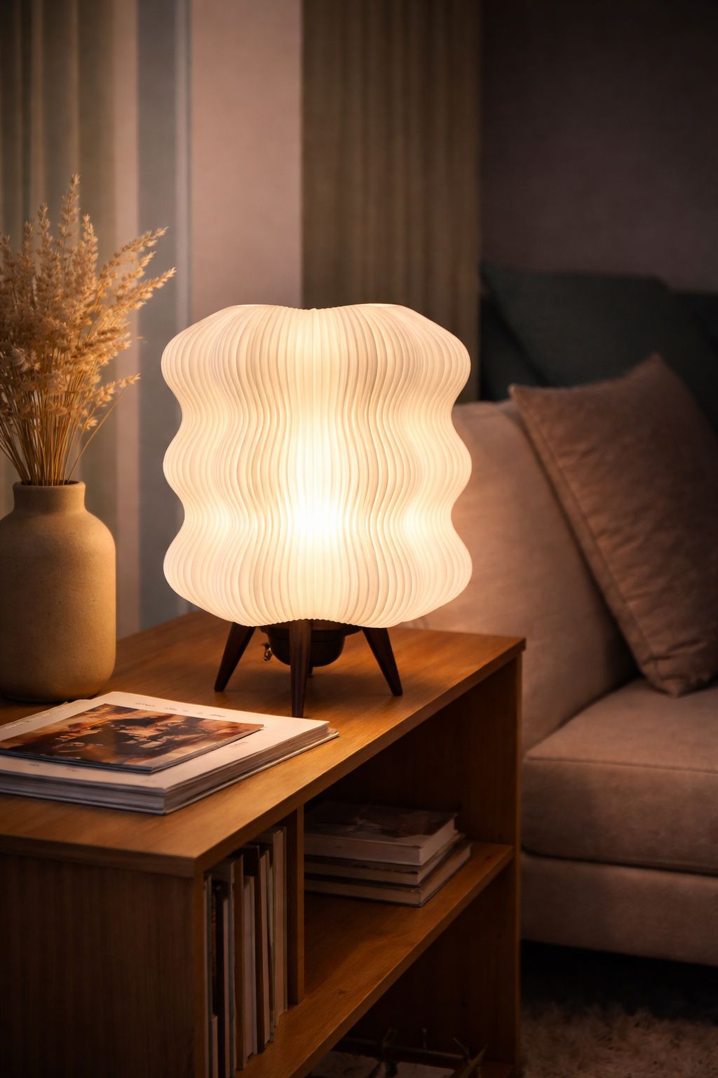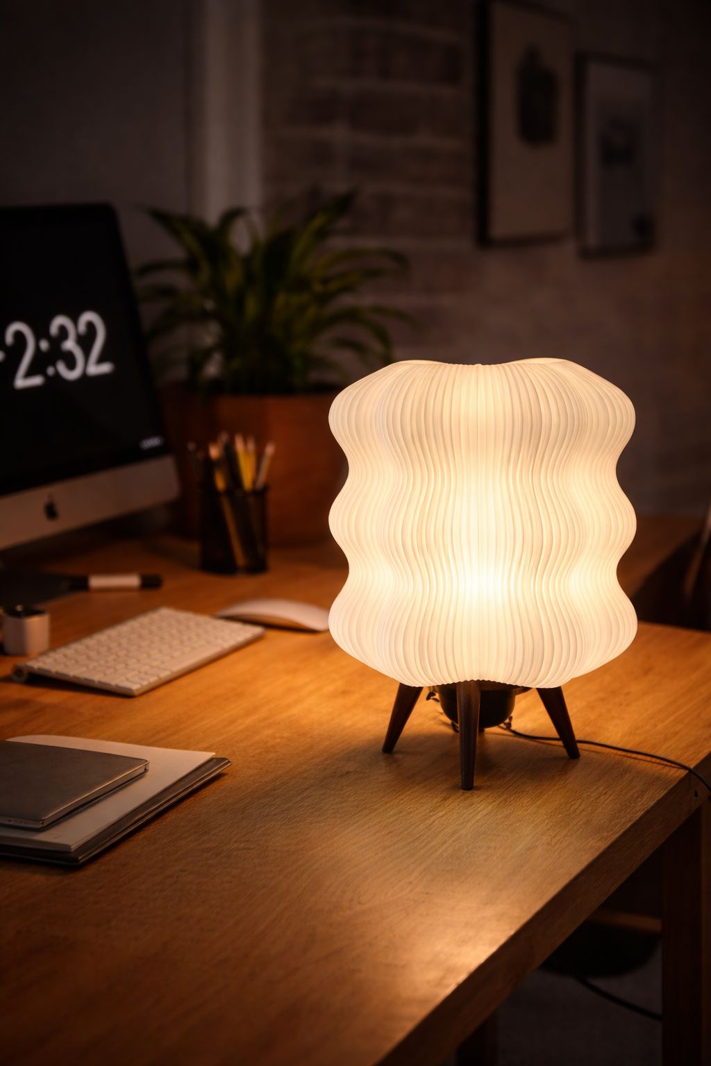 3D yazıcı teknolojisi ile üretilen bu dekoratif abajur, katmanlı yüzey dokusu sayesinde ışığı yumuşak ve homojen bir şekilde yayarak göz yormayan bir aydınlatma sunar.