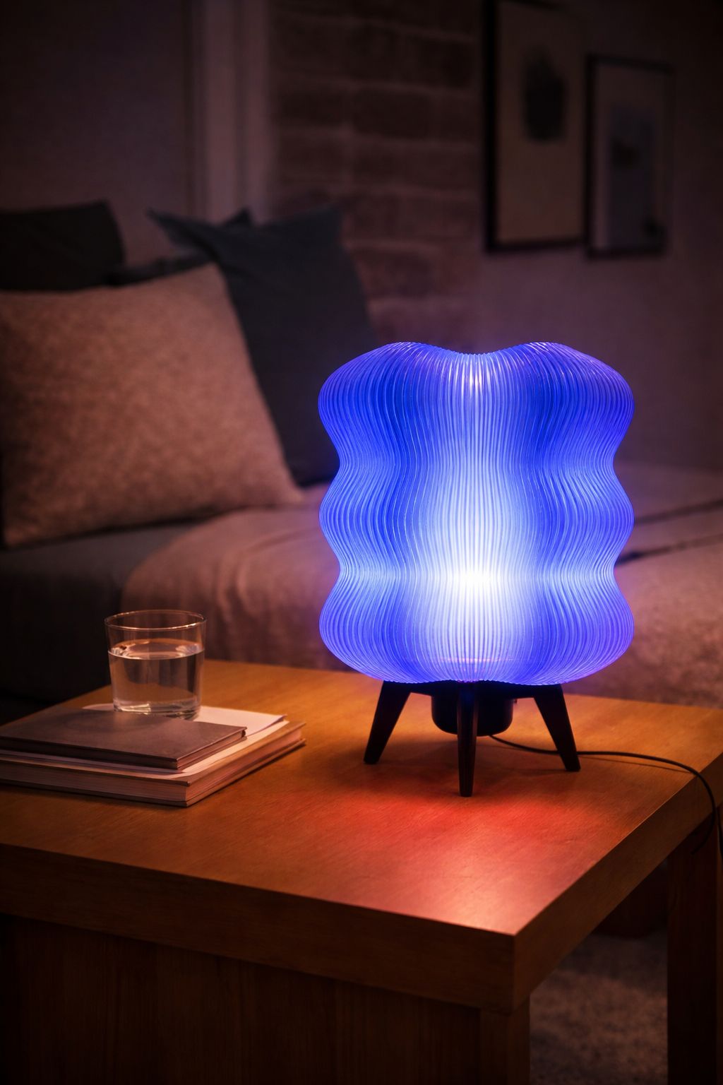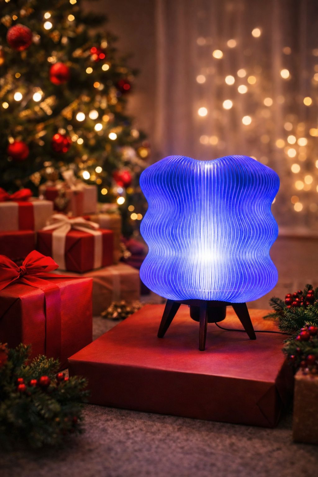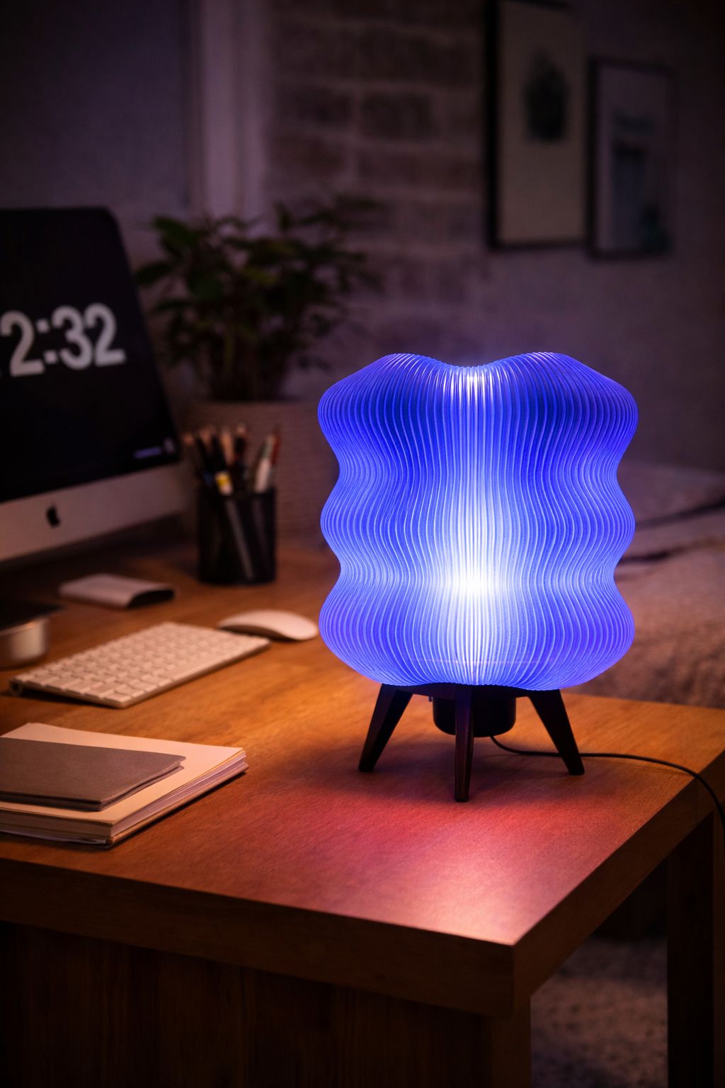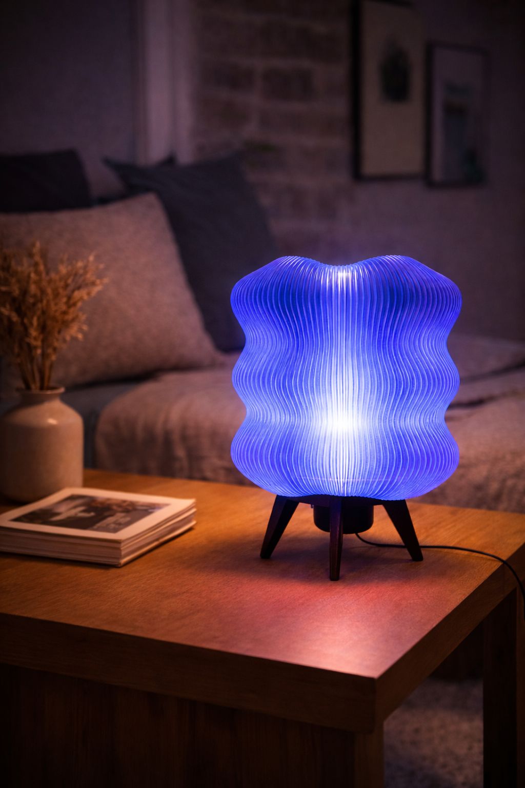 3D yazıcı teknolojisi ile üretilen bu dekoratif abajur, katmanlı yüzey dokusu sayesinde ışığı yumuşak ve homojen bir şekilde yayarak göz yormayan bir aydınlatma sunar.