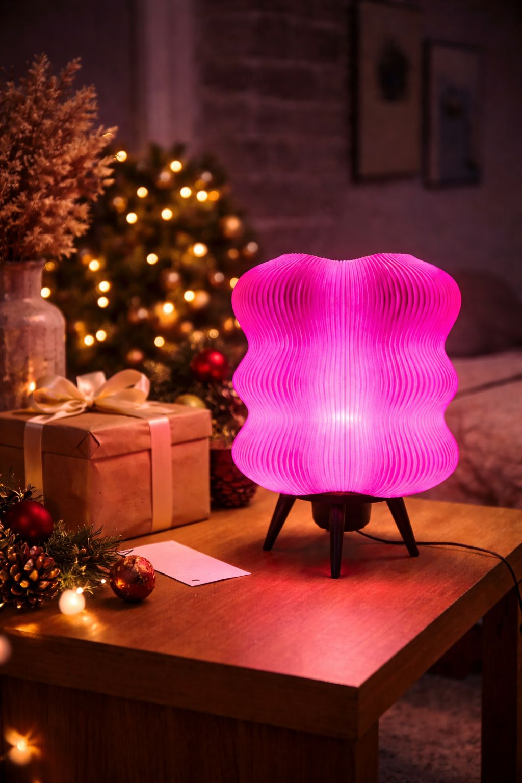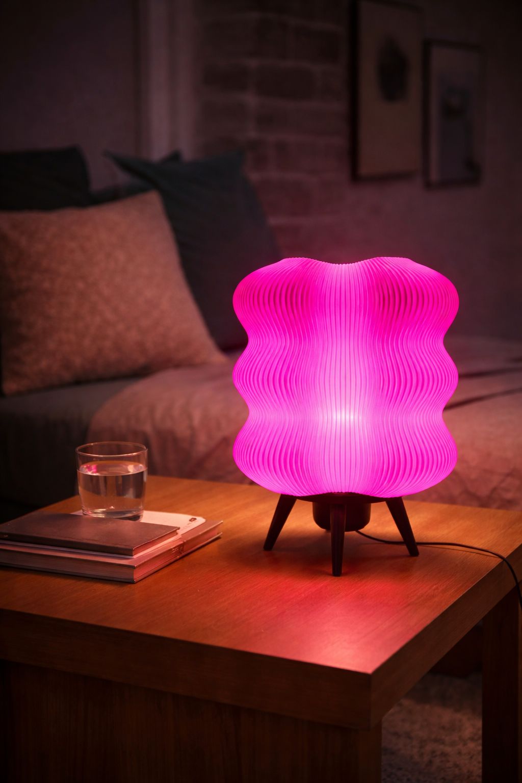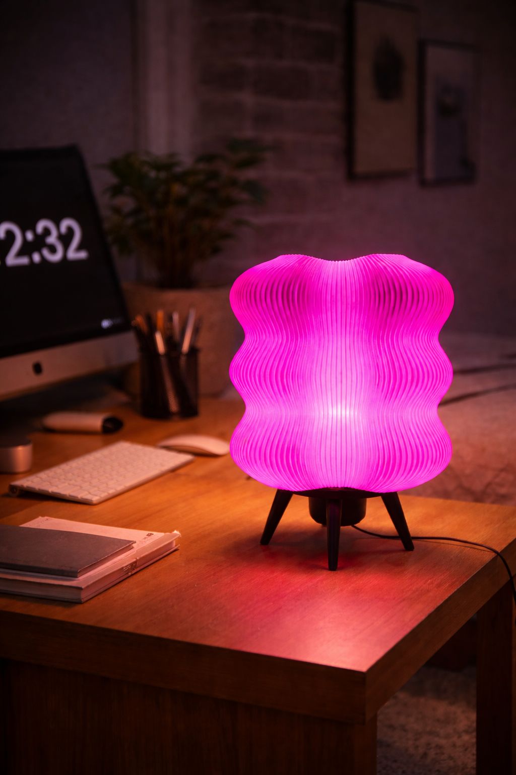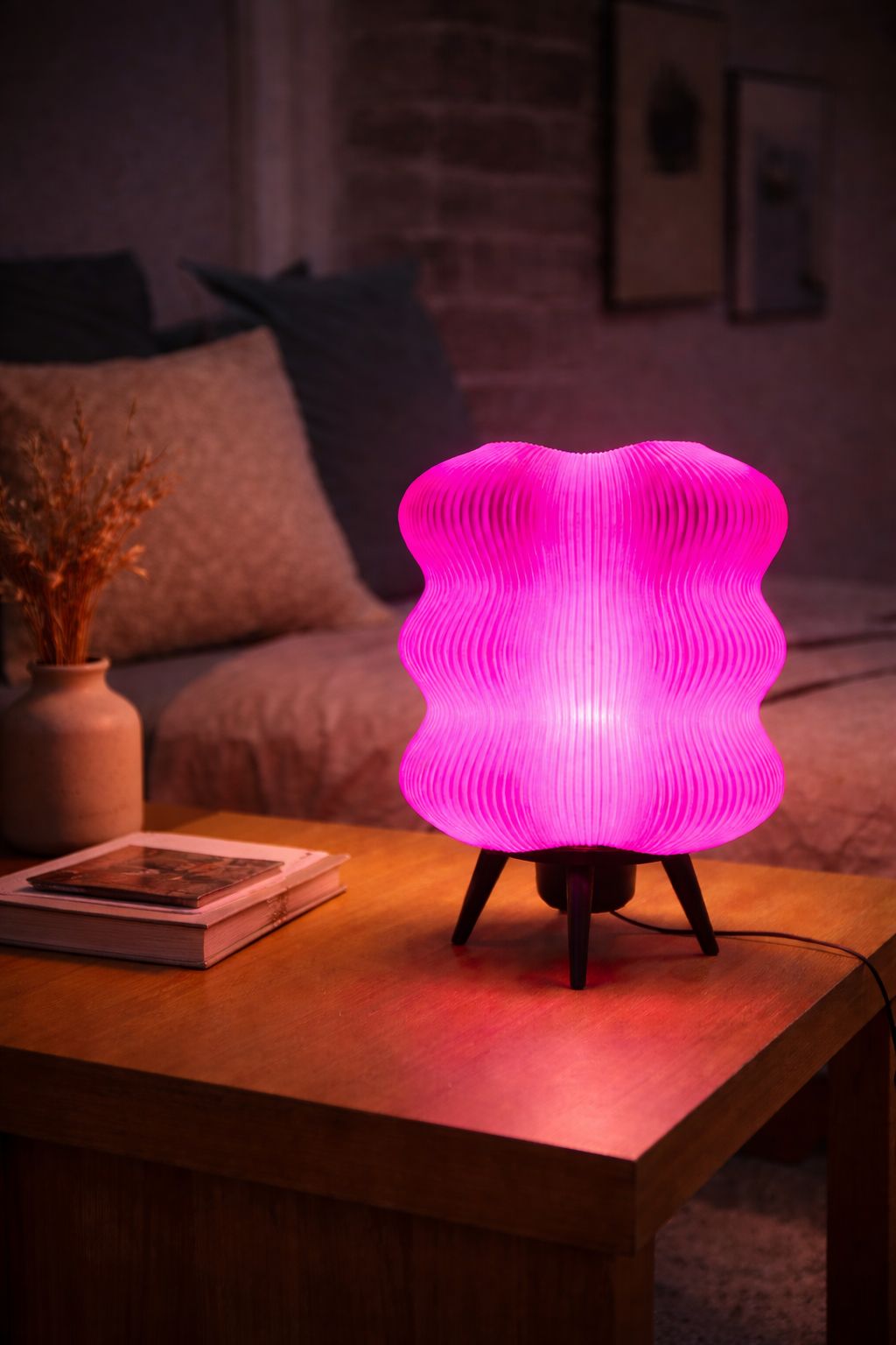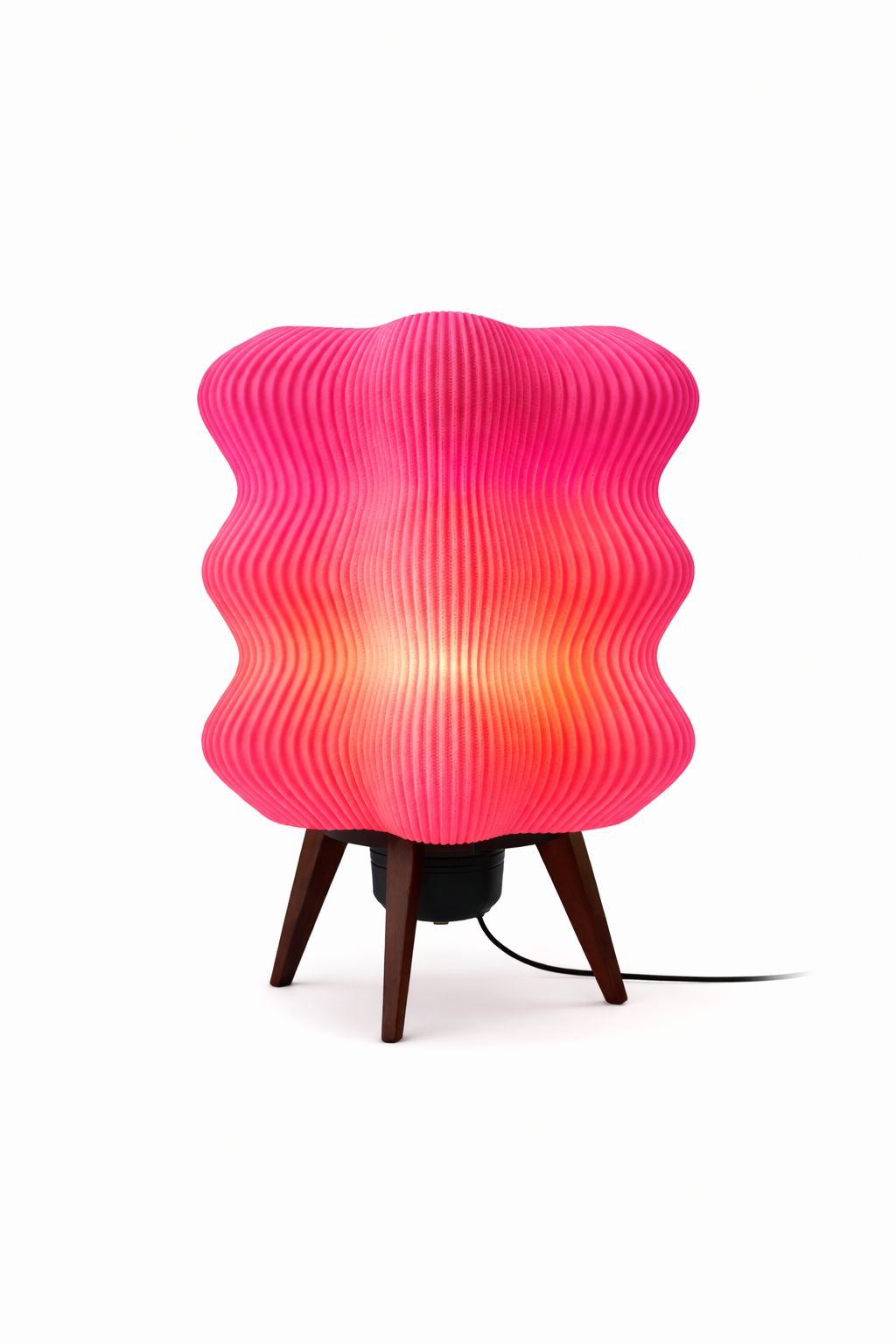 3D yazıcı teknolojisi ile üretilen bu dekoratif abajur, katmanlı yüzey dokusu sayesinde ışığı yumuşak ve homojen bir şekilde yayarak göz yormayan bir aydınlatma sunar.
